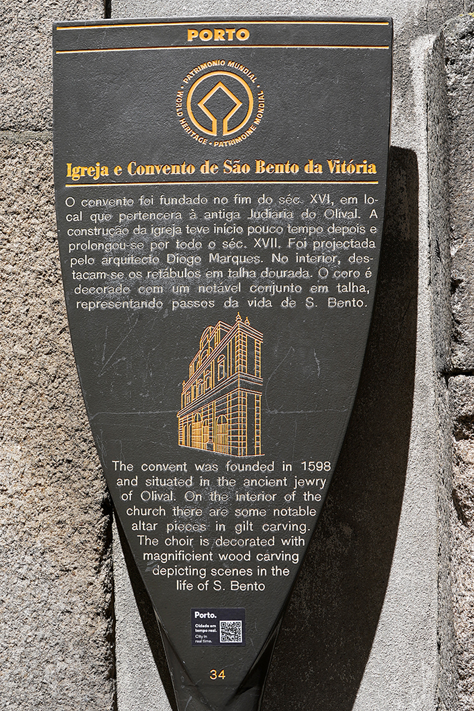 O Mosteiro de São Bento da Vitória localiza-se no centro do Porto, na freguesia da Vitória, e foi construído em finais do século XVI. A construção terminou cerca de um século depois do seu início. Um processo longo, que se reflete na arquitetura, de tipologia maneirista e barroca, bem como na ornamentação da Igreja, com obras de diferentes períodos e de grande significado no contexto da história de arte portuguesa.